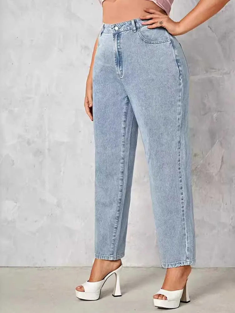 3xl Plus Size Women Clothing Spring Summer Blue Denim Overalls with Pockets Light Washed Casual Jeans Pants Ankle Length Pants