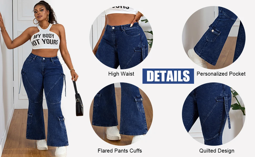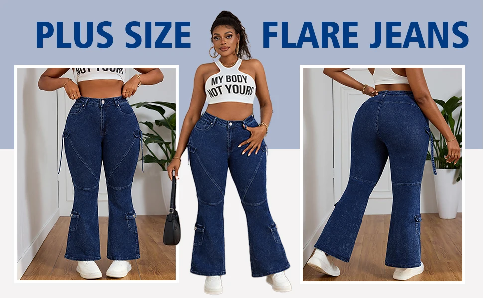 High Waisted Flare Jeans for Women Wide Leg Denim Pants Casual Loose Fit Bell Bottom Trousers Streetwear Y2K Style